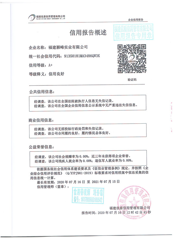 福建穎峰實業有限公司2020