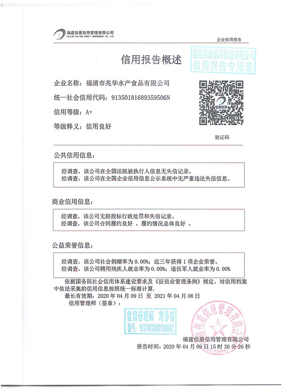 福清市兆華水產食品有限公司2020-4