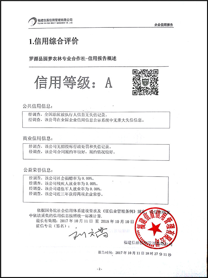 羅源縣圓夢農林專業合作社 XDBG201710001