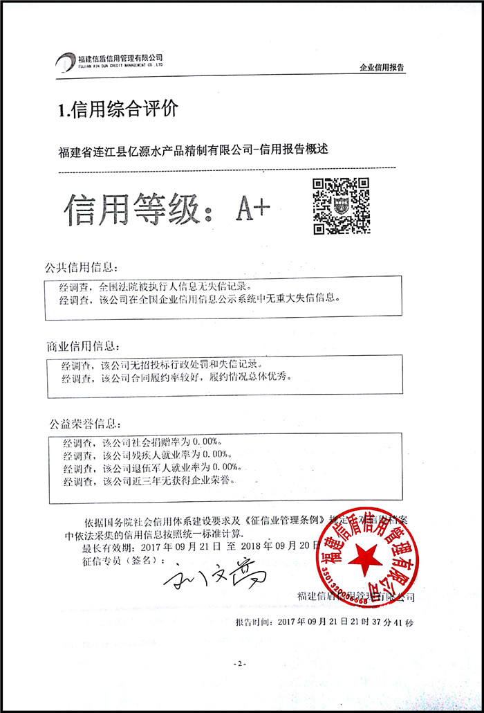 福建省連江縣億源水產品精制有限公司 XDBG201709028