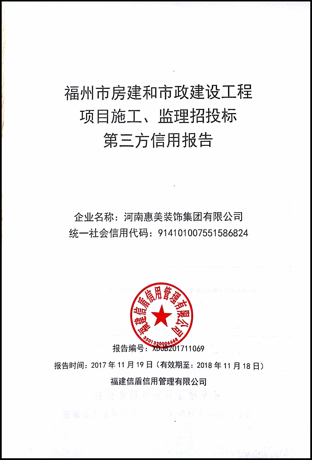 河南惠美裝飾集團有限公司 XDJB201711069