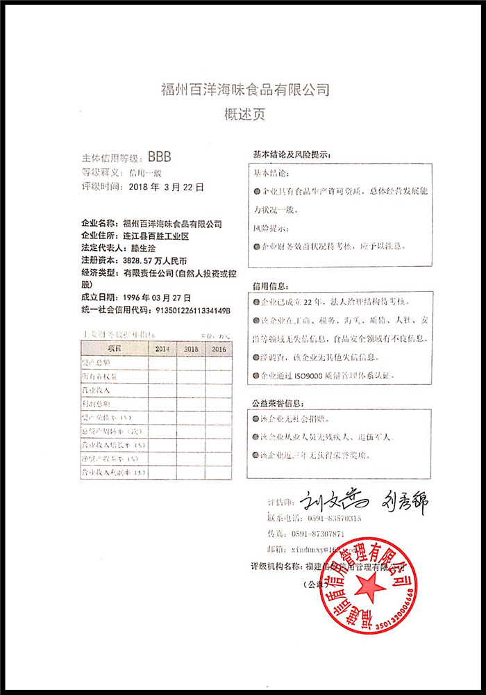 福州百洋海味食品有限公司 XDPJ201803127
