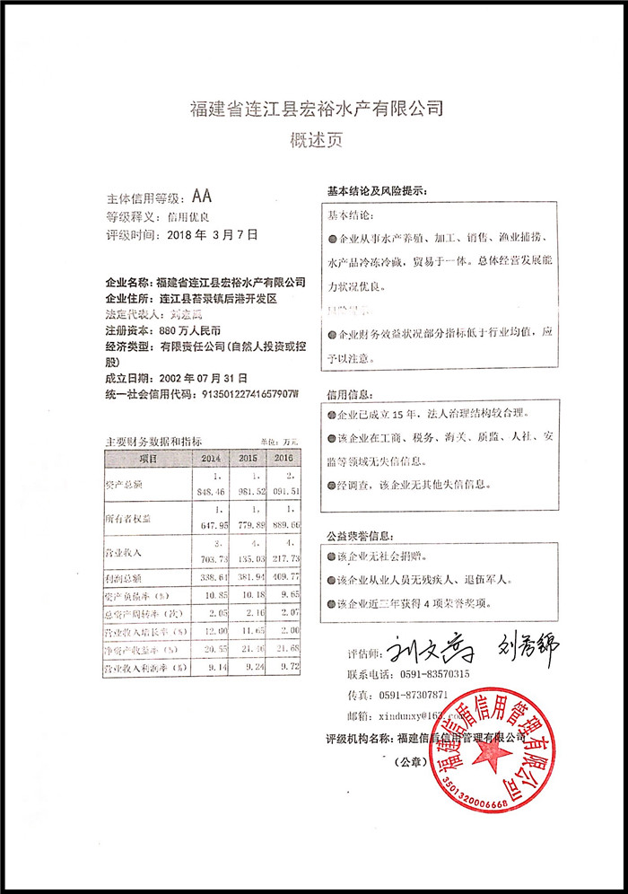 福建省連江縣宏裕水產有限公司 XDPJ201803160