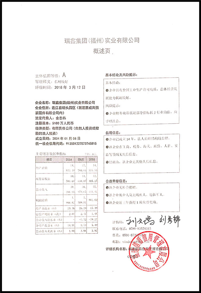 瑞鑫集團(福州)實業有限公司 XDPJ201803170