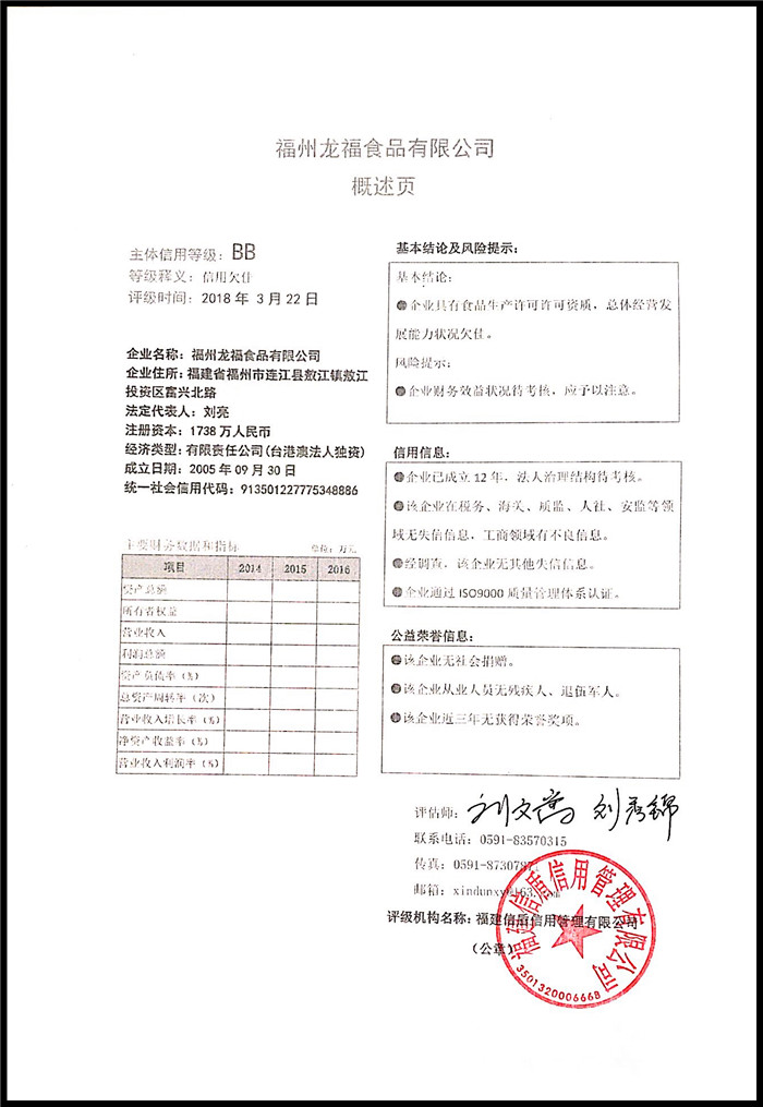 福州龍福食品有限公司 XDPJ201803174