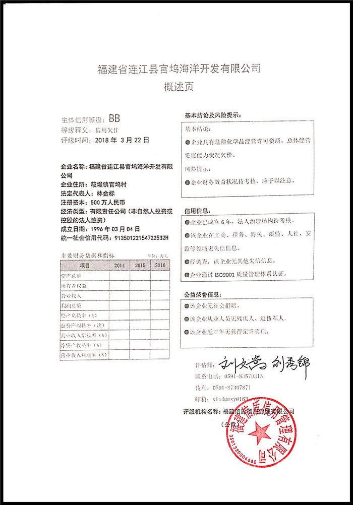 福建省連江縣官塢海洋開發有限公司 XDPJ201803194