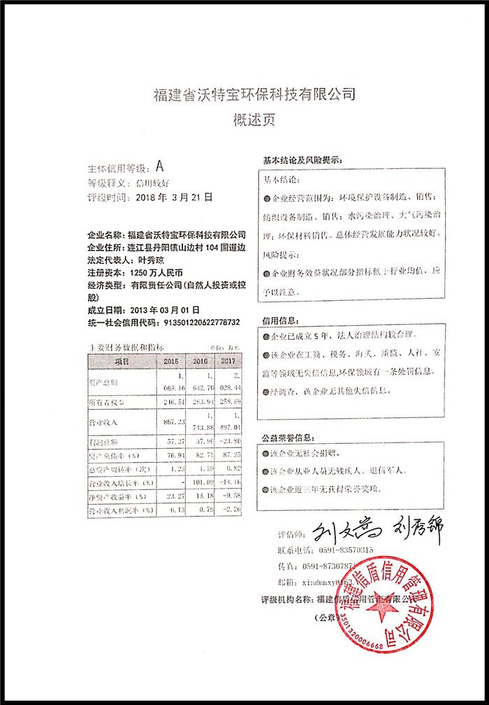 福建省沃特寶環保科技有限公司 XDPJ201803199