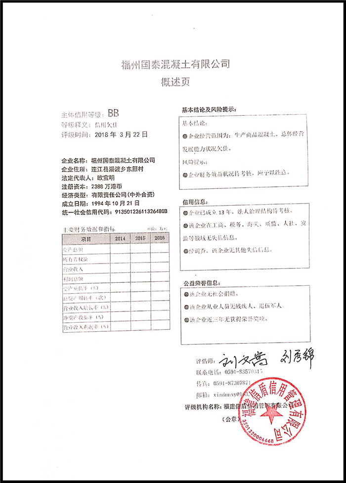 福州國泰混凝土有限公司 XDPJ201803219