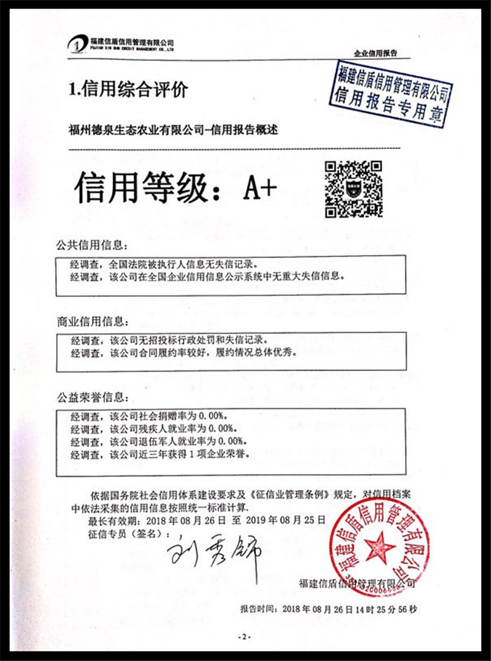 福州德泉生態農業有限公司 XDBG201808008