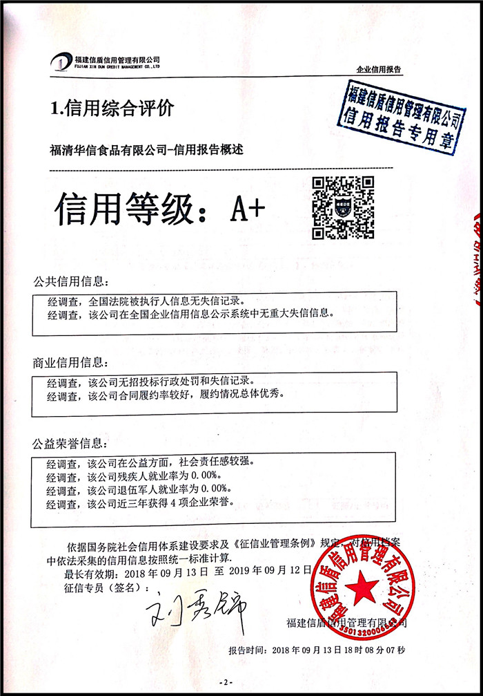 福清華信食品有限公司 XDBG201809030